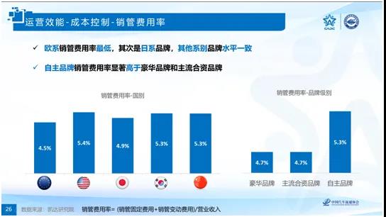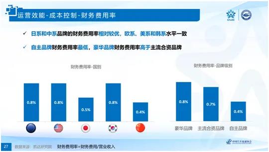 從衡量成本控制的銷管費用率和財務費用率兩個指標來看,美系和韓系品牌經銷商的費用率高于其他系別品牌;自主品牌經銷商的費用率稍高于豪華品牌和主流合資品牌。