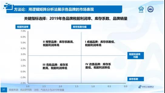 在報告的最后,王院長發布了2019年品牌綜合競爭力榜單。該榜單根據稅前利潤率、庫存系數、終端銷量綜合分析得出各品牌的綜合競爭力矩陣圖,處于第一象限的品牌綜合競爭力最強,為綠燈區品牌,處于第三象限的品牌綜合競爭力最弱,為紅燈區品牌。王院長呼吁處于紅燈區的品牌,在2020年,與經銷商保持緊密的伙伴關系,將經銷商的生存當成頭等大事,并與經銷商一起攜手攬腕、共克時艱。